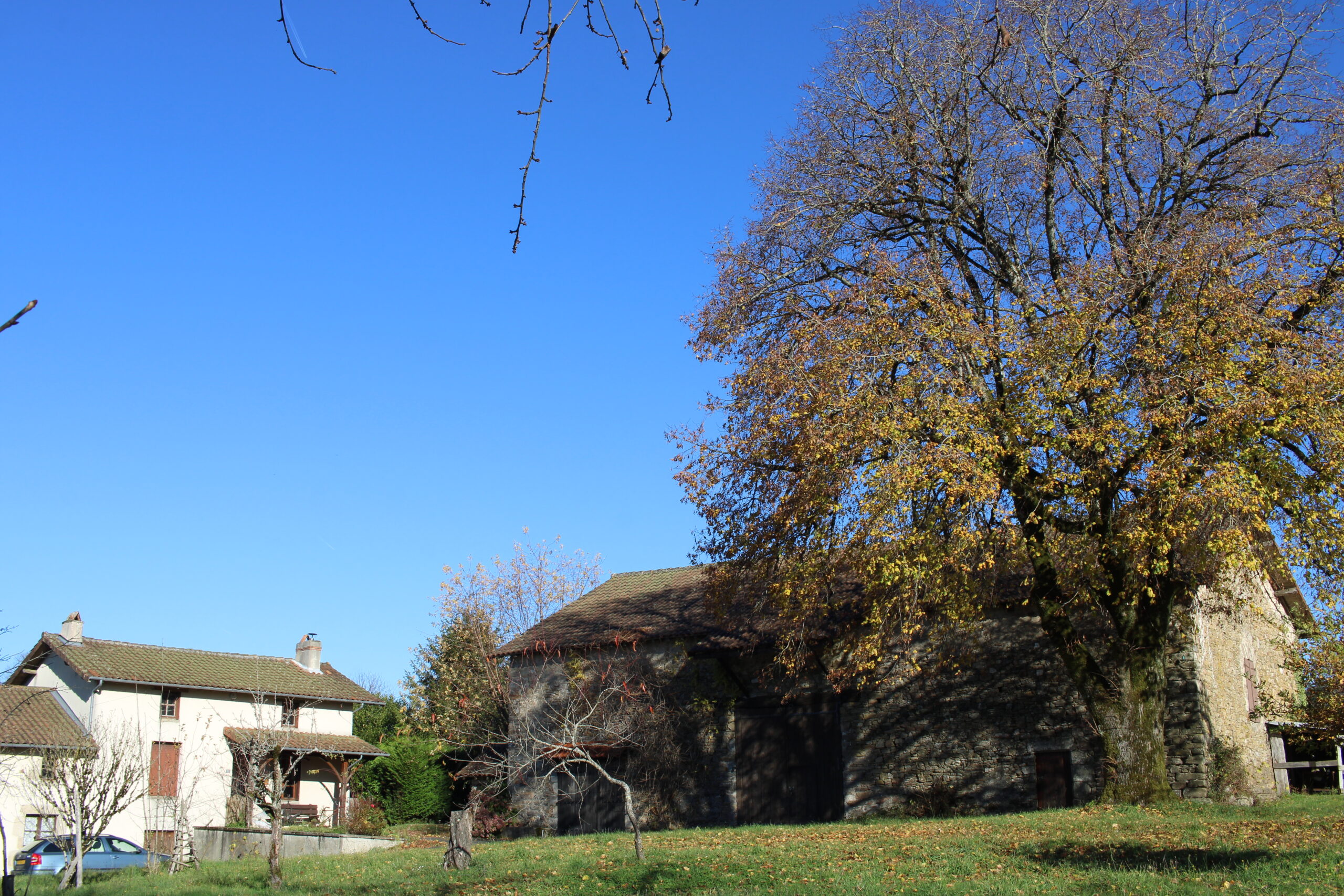 Eigenlijk hoopten we op somber weer. Zodat we het huis op zijn slechtst konden zien en bepalen of we het dan nog steeds mooi vonden. Helaas pindakaas. Het was het allermooiste herfstweer dat je je maar voor kon stellen. ’s Ochtends de rijp op de velden en slierten mist over het dal, ‘s middags kon je zonder jas in het zonnetje zitten. Prachtige kleuren overal een ontzettend mooi licht! Voorlopig denken we dus dat de herfst het mooiste seizoen is in La Gacherie!